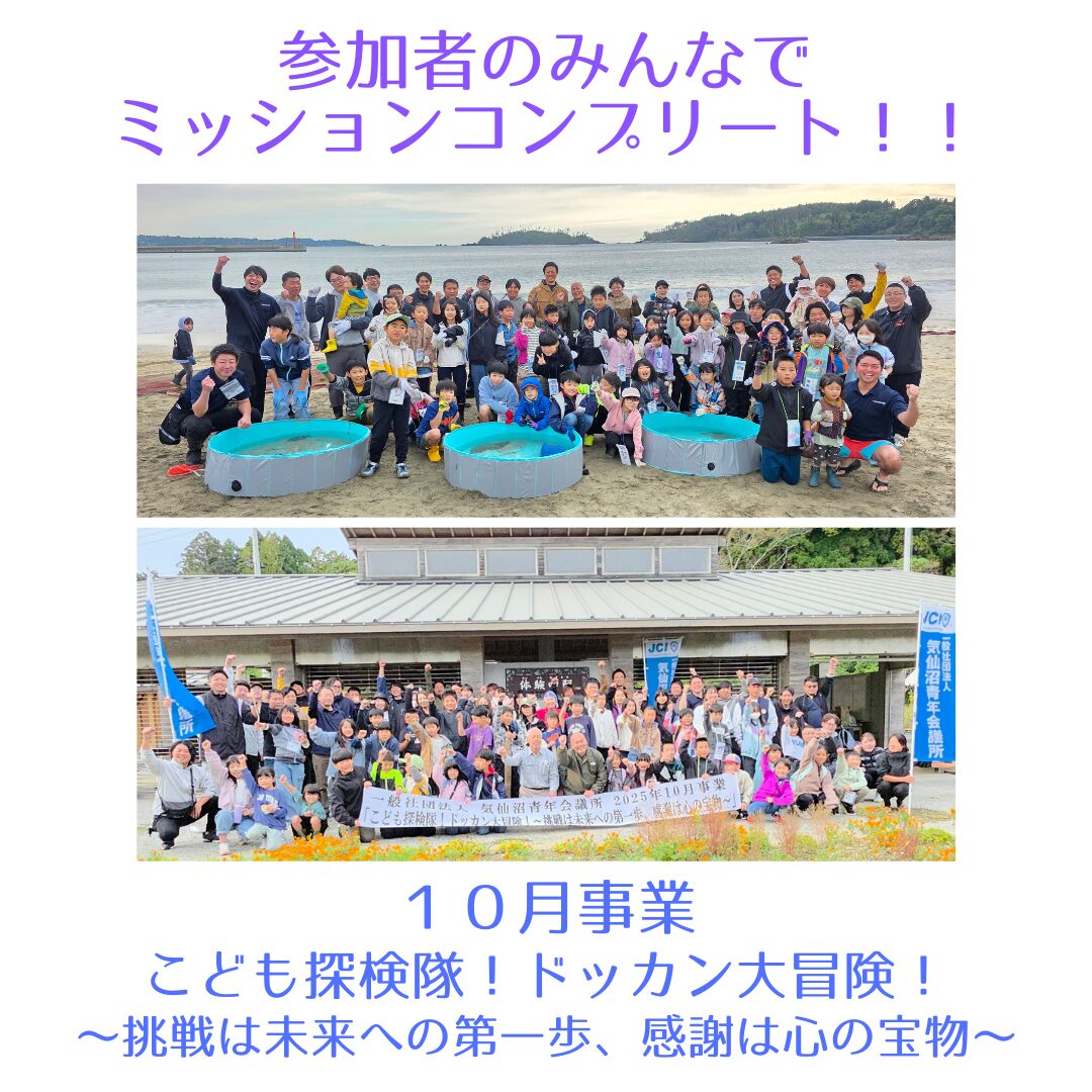 10月19日(土)、気仙沼大島地域の小田の浜海水浴場および田中浜体験四阿を舞台に、指導力開発委員会の主管のもと【10月事業「こども探検隊!ドッカン大冒険!~挑戦は未来への第一歩、感謝は心の宝物~」】を開催いたしました。