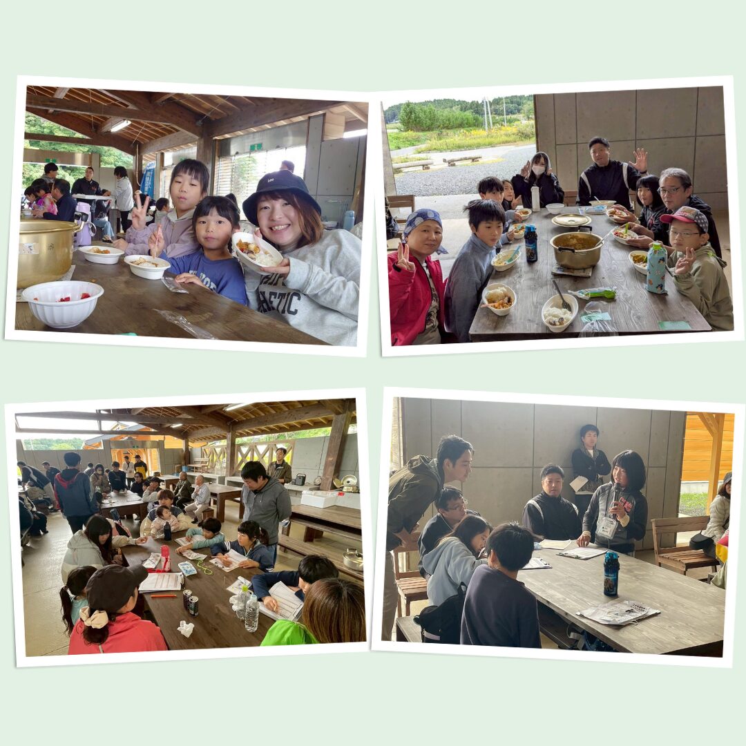 地域訪問を終えた後は、田中浜体験四阿でグループごとに「カレーづくり」を実施しました。野菜の下ごしらえから調理まで、子供たちが主体的に役割を見つけて協力し合い、共同作業を通じて達成感を味わいました。昼食には地域訪問に伺った方々を招待し、地域の絆を一層強める温かな時間となりました。