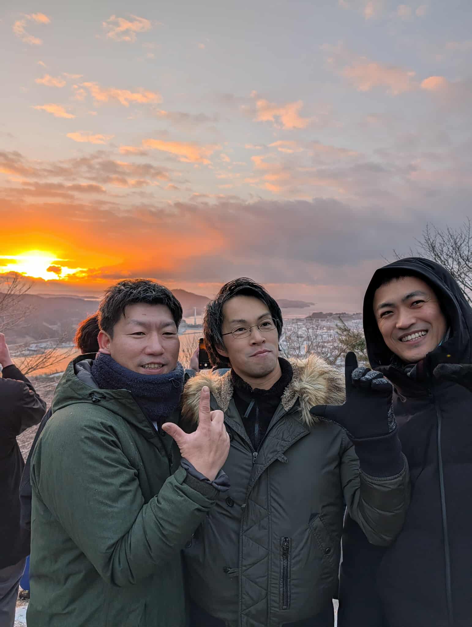 登山道にはうっすら雪が積もっている中での登山となりましたが、ご来光を望むべく集まった多くの市民の皆様に向けて、素晴らしい初日の出と共に第58代理事長 菊地祥太より新年のご挨拶をさせていただき、幸先のよい菊地丸の船出となりました。