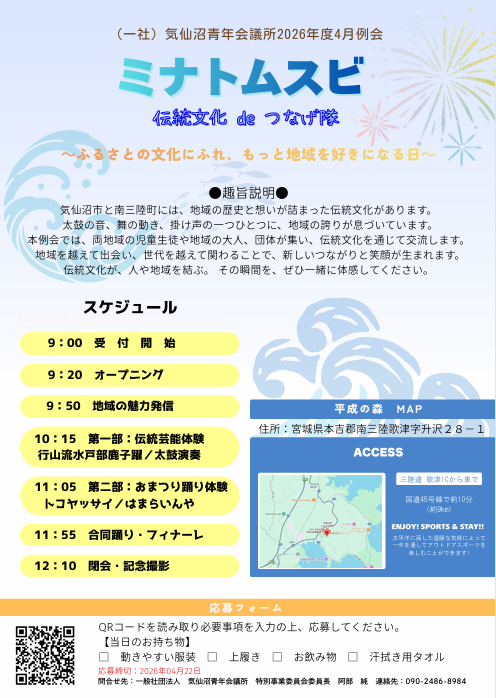 4月例会 「ミナトムスビ~伝統文化deつなげ隊~」開催のご案内
