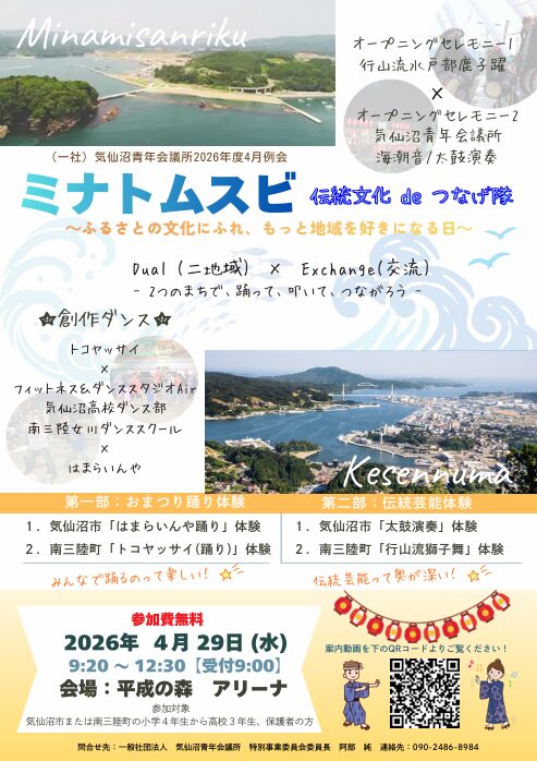 本イベントは、気仙沼市×南三陸町の2地域が「伝統文化」を通じてつながる“はじめの一歩”。